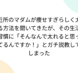 近所のマダムが痩せすぎらしく太る方法を聞いてきたが、その生活習慣に「そんなんで太れると思ってるんですか!」とガチ説教してしまった
