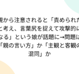親から注意されると「責められたと考え、言葉尻を捉えて攻撃的になる」という娘が話題に→問題は「親の言い方」か「主観と客観の混同」か