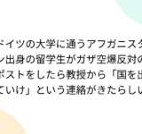 ドイツの大学に通うアフガニスタン出身の留学生がガザ空爆反対のポストをしたら教授から「国を出ていけ」という連絡がきたらしい