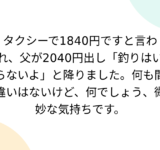 タクシーで1840円ですと言われ、父が2040円出し「釣りはいらないよ」と降りました。何も間違いはないけど、何でしょう、微妙な気持ちです。