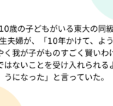 10歳の子どもがいる東大の同級生夫婦が、「10年かけて、ようやく我が子がものすごく賢いわけではないことを受け入れられるようになった」と言っていた。