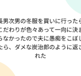長男次男の冬服を買いに行ったらこだわりが色々あって一向に決まらなかったので夫に愚痴をこぼしたら、ダメな炭治郎のように返された