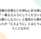 受験の合格などを神仏に祈る時は「一番ええようにしてくださいとお願いしなさい」と祖母から教わったが「ええように」とはどういうことなのか