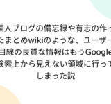 個人ブログの備忘録や有志の作ったまとめwikiのような、ユーザー目線の良質な情報はもうGoogle検索上から見えない領域に行ってしまった説