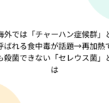 海外では「チャーハン症候群」と呼ばれる食中毒が話題→再加熱でも殺菌できない「セレウス菌」とは