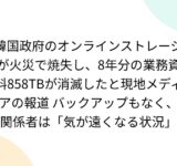 韓国政府のオンラインストレージが火災で焼失し、8年分の業務資料858TBが消滅したと現地メディアの報道 バックアップもなく、関係者は「気が遠くなる状況」