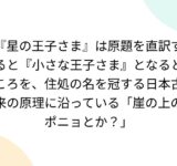 『星の王子さま』は原題を直訳すると『小さな王子さま』となるところを、住処の名を冠する日本古来の原理に沿っている「崖の上のポニョとか?」