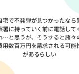 自宅で不発弾が見つかったなら警察署に持っていく前に電話してくれ…と思うが、そうすると諸々の費用数百万円を請求される可能性があるらしい