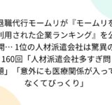 退職代行モームリが『モームリを利用された企業ランキング』を公開… 1位の人材派遣会社は驚異の160回「人材派遣会社多すぎ問題」「意外にも医療関係が入ってなくてびっくり」