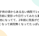 子供の頃からある古い病院で1ヶ月前に受診→今日行ってみたら更地になってて、2年前に院長が亡くなって病院無くなってたっぽい