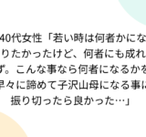 40代女性「若い時は何者かになりたかったけど、何者にも成れず。こんな事なら何者になるかを早々に諦めて子沢山母になる事に振り切ったら良かった…」