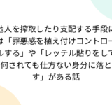 他人を搾取したり支配する手段には「罪悪感を植え付けコントロールする」や「レッテル貼りをして何されても仕方ない身分に落とす」がある話
