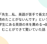 「先生…私、英語が苦手で長文が読めたことがないんです」という学生にある英語の本を薦める→読むことができて驚いていた話