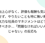 向上心がなく、評価も報酬も気にせず、やりたいことも特に無い無気力な社員のマネジメントはどうすべきか…「問題なければいいんじゃない」の反応も