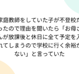 家庭教師をしていた子が不登校だったので理由を聞いたら「お母さんが放課後と休日に全て予定を入れてしまうので学校に行く余裕がない」と言っていた