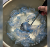 雑食系YouTuberのホモサビ氏、猛毒クラゲ”カツオノエボシ”を煮込んで食べる「ホタテの味がする」