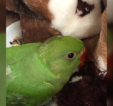 公園に座ってたら足に登ってきてそのまま離れないので迷子のインコだと思って保護したんだけどもしかして野生化した種類…?私がママになるの?