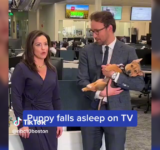 ニュース番組出演中に居眠りし始めた犬さんとアナウンサーのリアクションが可愛くてもう「これはたまらない」