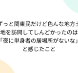 ずっと関東民だけど色んな地方土地を訪問してしんどかったのは「夜に単身者の居場所がないな」と感じたこと