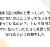 都市伝説の類だと思っていた「信仰が無いのにどうやってモラルを保っているのか?」という質問をNYに住んでいたときに真顔で聞かれるという体験をした