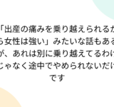 「出産の痛みを乗り越えられるから女性は強い」みたいな話もあるが、あれは別に乗り越えてるわけじゃなく途中でやめられないだけです