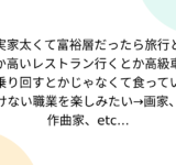 実家太くて富裕層だったら旅行とか高いレストラン行くとか高級車乗り回すとかじゃなくて食っていけない職業を楽しみたい→画家、作曲家、etc…