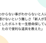 わからない事がわからないと人に聞けないという難しさ「新人が落としたボルトを一生懸命探していたので便利な道具を教えた」