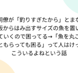 同僚が「釣りすぎたから」とまな板からはみ出すサイズの魚を置いていくので困ってる→「魚を丸ごともらっても困る」って人はけっこういるよねという話