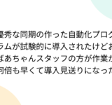 優秀な同期の作った自動化プログラムが試験的に導入されたけどおばあちゃんスタッフの方が作業が何倍も早くて導入見送りになった
