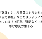 「外注」という言葉はもう失礼で「協力会社」などを使うようになっている?→同意、疑問などさまざな意見が集まる
