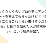 100人ぐらいプロ作家にアンケートを答えてもらったけど『「自分にならこれぐらい書けそうだから」と創作を始めた人が結構多い』という結果が出た