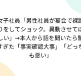女子社員「男性社員が宴会で裸踊りをしてショック。異動させてほしい」→本人から話を聞いたら闇すぎた「事実確認大事」「どっちも悪い」