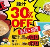 松屋、豚汁30%OFFキャンペーン開催! 2月21日15時~2月28日15時まで