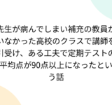 先生が病んでしまい補充の教員がいなかった高校のクラスで講師を引受け、ある工夫で定期テストの平均点が90点以上になったという話