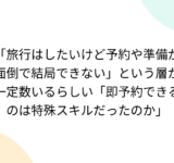 「旅行はしたいけど予約や準備が面倒で結局できない」という層が一定数いるらしい「即予約できるのは特殊スキルだったのか」