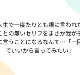 人生で一度たりとも親に言われたことの無いセリフをまさか我が子に言うことになるなんて…「一回でいいから言ってみたい」