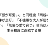 「顔が可愛い」と同程度「両親の仲が良好」「不機嫌な大人が居ない」「無償の愛で育つ」環境は人生幸福度に直結する説