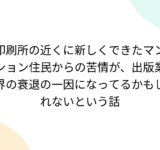 印刷所の近くに新しくできたマンション住民からの苦情が、出版業界の衰退の一因になってるかもしれないという話