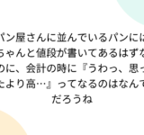 パン屋さんに並んでいるパンにはちゃんと値段が書いてあるはずなのに、会計の時に『うわっ、思ったより高…』ってなるのはなんでだろうね