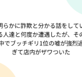 明らかに詐欺と分かる話をしている人達と何度か遭遇したが、その中でブッチギリ1位の嘘が強烈過ぎて店内がザワついた