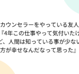 カウンセラーをやっている友人『4年この仕事やって気付いたけど、人間は知っている事が少ない方が幸せなんだなって思った』
