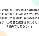中央官庁から県警本部へ出向経験がある方から聞いた話だが、歓迎会の催しで警備部公安係の恐ろしさがわかる芸を披露されたらしい「優秀ではあるな…」