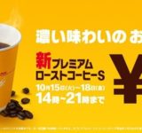 【お得】マックコーヒー(ホット)Sサイズ1人1杯無料18日金曜まで14時~21時 / 一風堂10月16日ラーメン無料 昼夜2回