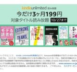 【朗報】KindleUnlimitedが3ヶ月199円セールを開始!10月27日まで