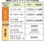 マクドナルドが俺にとっては18%値上げなんだが・・・。