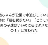 娘ちゃんが公園で水遊びしている時に「服を脱ぎたい」「どうして男の子達はいいのに私はダメなの!」と言われた