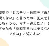 職場で「ミステリー映画を『まだ観てない』と言ったのに犯人を言っちゃうの、マナー違反だよ」と言ったら「昭和生まれはそうなんですね」と返された
