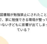 図書館が勉強禁止にされたことで、家に勉強できる環境が整っていない子どもに影響が出てしまっている?