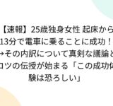 【速報】25歳独身女性 起床から13分で電車に乗ることに成功!→その内訳について真剣な議論とコツの伝授が始まる「この成功体験は恐ろしい」