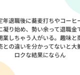 定年退職後に蕎麦打ちやコーヒーに凝り始め、勢い余って退職金で開業しちゃう人がいる。趣味と商売との違いを分かってないと大抵ロクな結果にならん